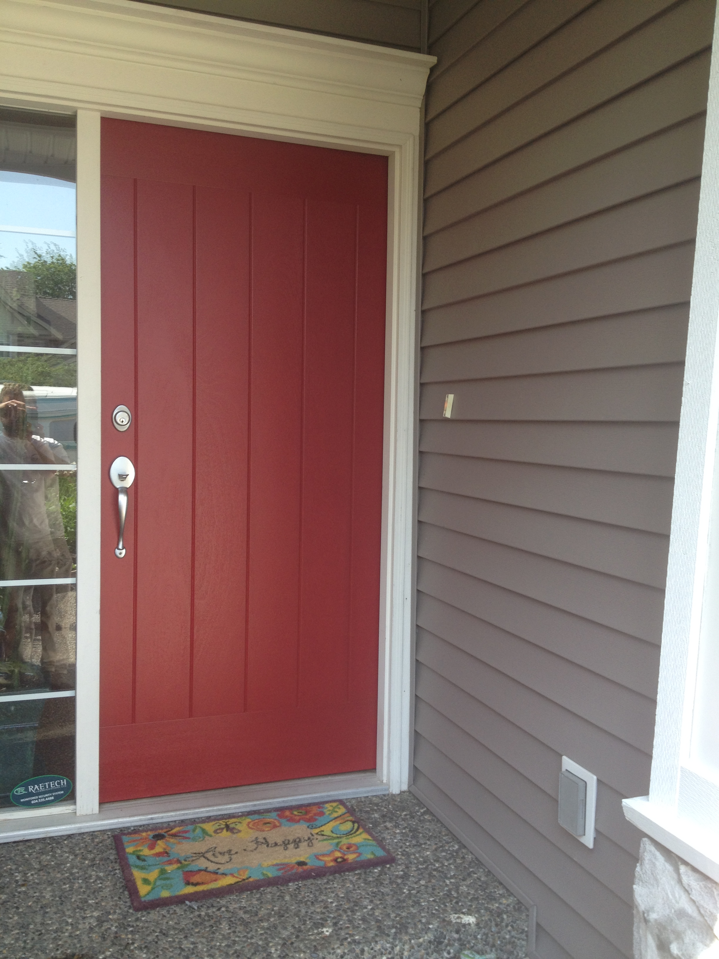 This is a front door repaint we did for a home in Aldergrove, BC. Using Dulux Diamond Exterior Semi-Gloss paint, we were able to give this front door a beautiful colour.