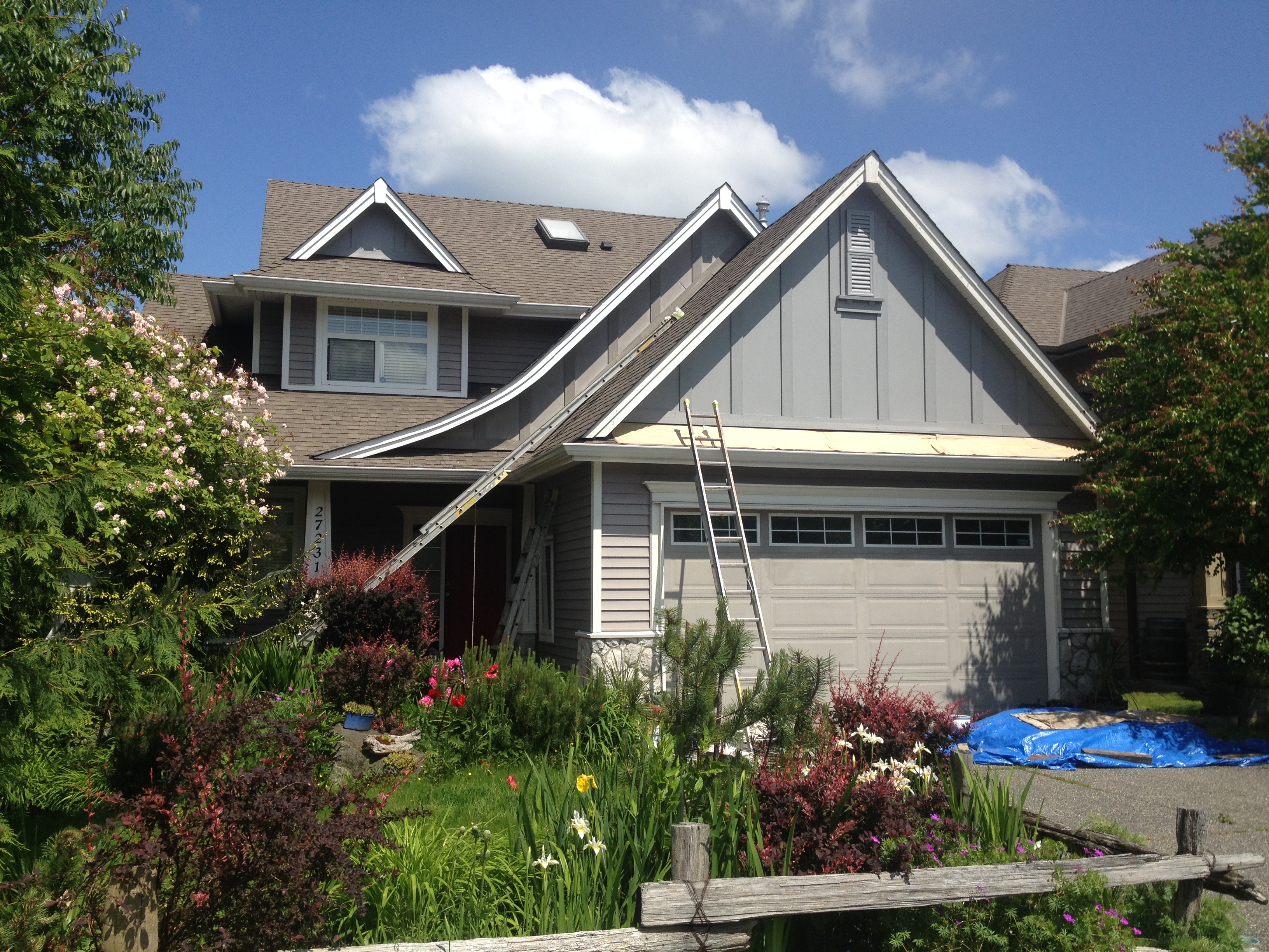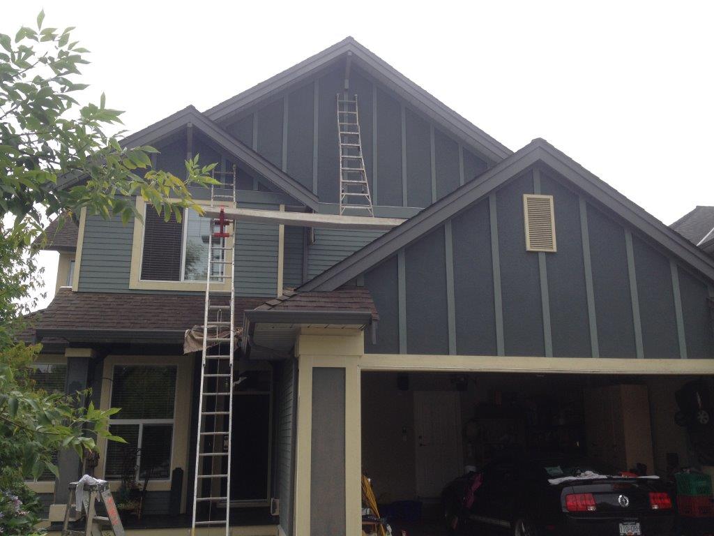 No painting job is too challenging for our professional painters. This exterior painting project was for an Aldergrove home with a challenging roof pitch.