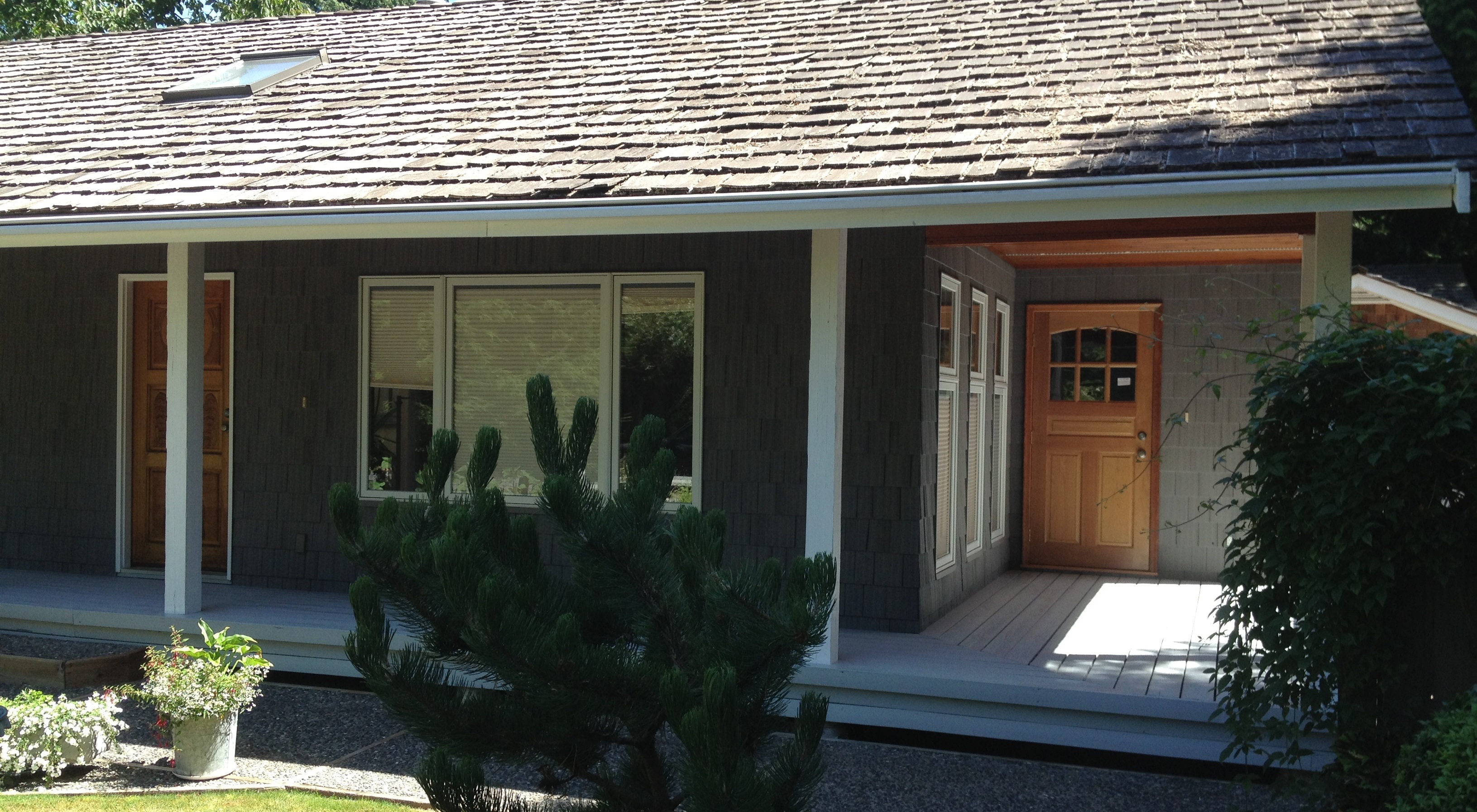 This house in Coquitlam, BC hadn’t been painted in over 25 years. The shingles required 3 coats of paint. We coated the home’s shingles with Floodpro solid which is guaranteed for 15 years on wood siding by the manufacturer. For the stucco, we used Dulux Diamond Exterior Flat.